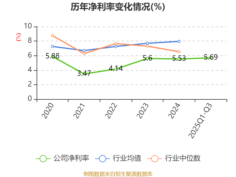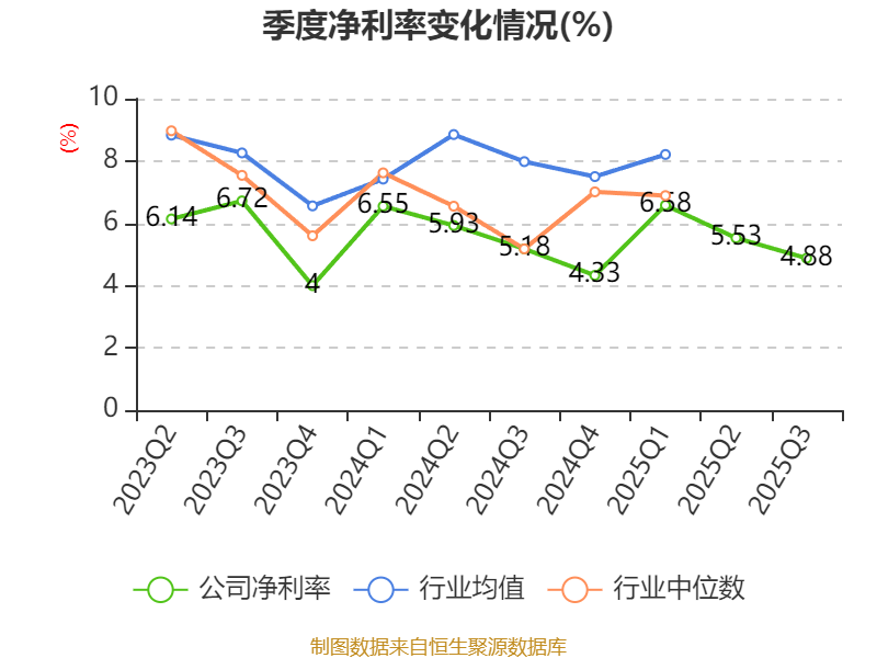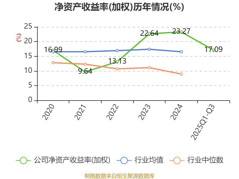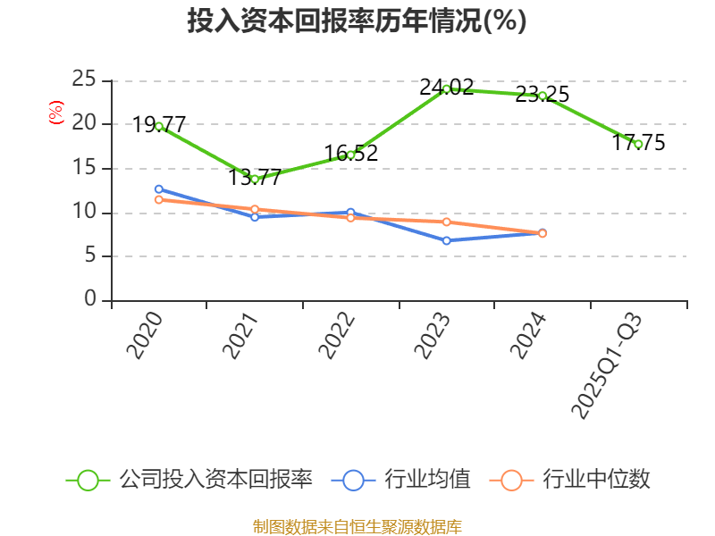 盈利能力方面, 2025年前三季度公司加权平均净资产收益率为17.09%,同比下降2.47个百分点。公司2025年前三季度投入资本回报率为17.75%,较上年同期下降1.53个百分点。