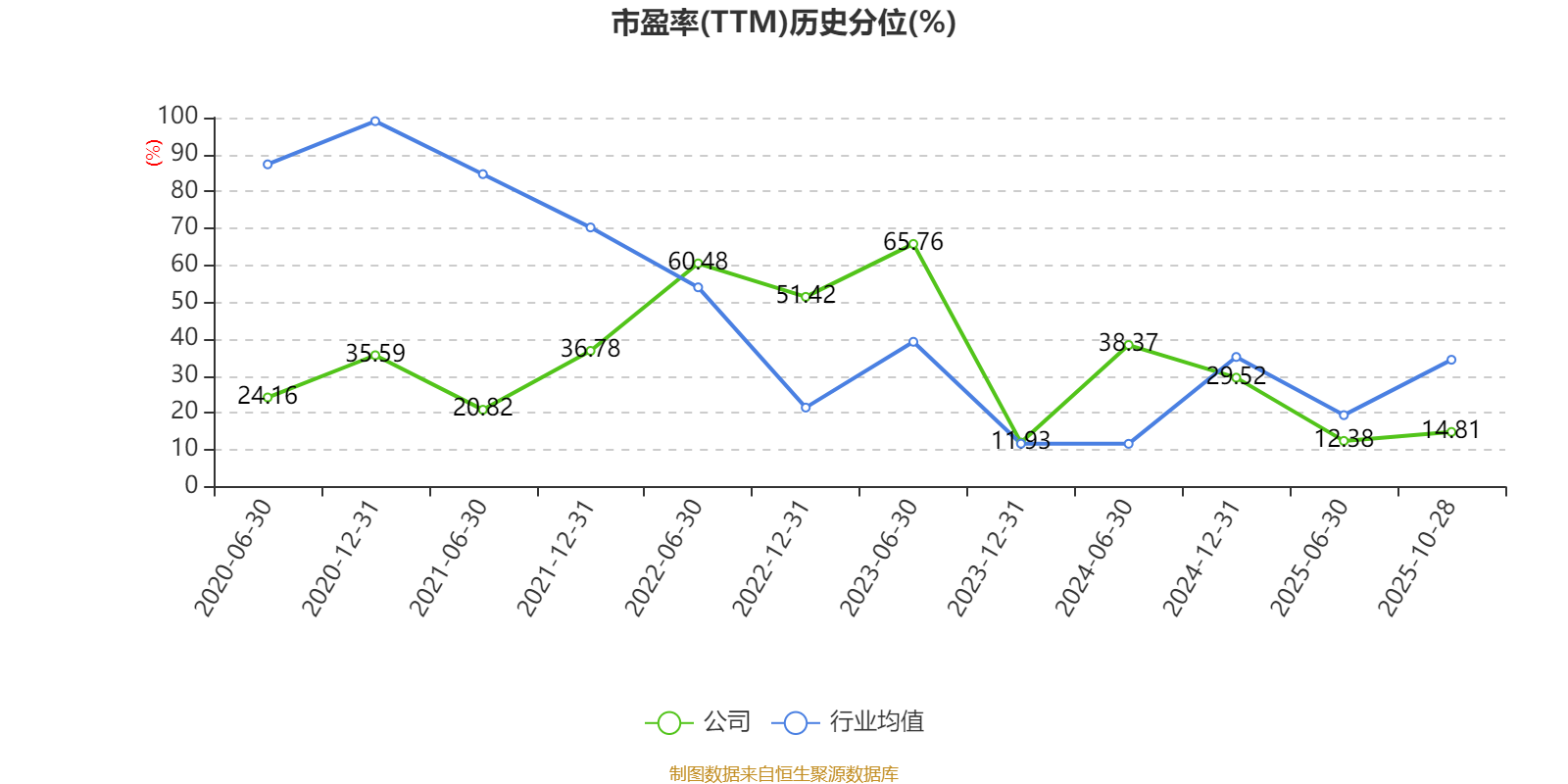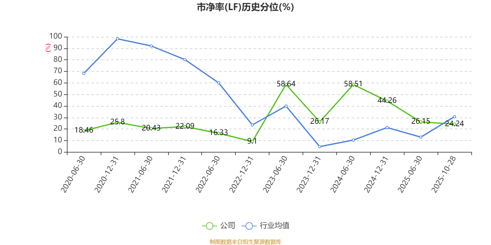 市盈率、市净率为负时,不显示当期分位数,会导致折线图中断。