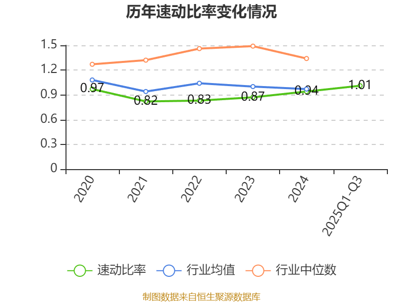 2025年前三季度,公司流动比率为1.13,速动比率为1.01。