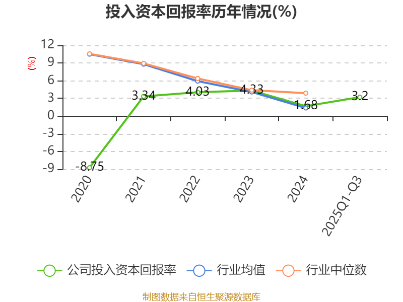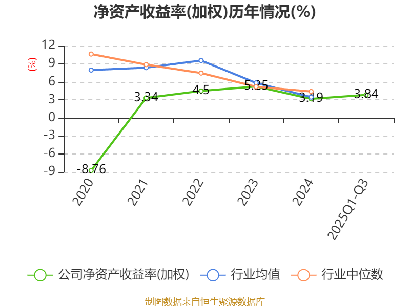 盈利能力方面, 2025年前三季度公司加权平均净资产收益率为3.84%,同比上升0.16个百分点。公司2025年前三季度投入资本回报率为3.2%,较上年同期上升0.19个百分点。