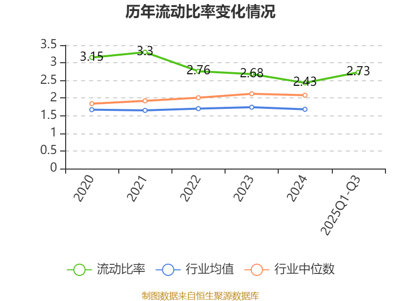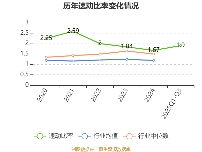 2025年前三季度,公司流动比率为2.73,速动比率为1.9。