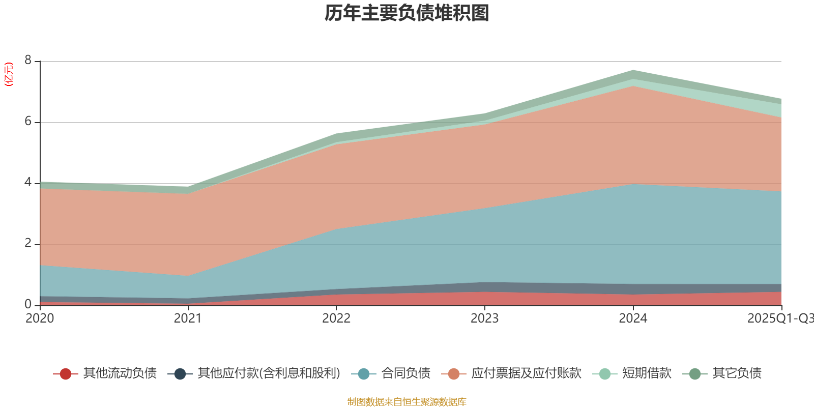 负债重大变化方面,截至2025年三季度末,公司应付票据及应付账款较上年末减少24.71%,占公司总资产比重下降3.52个百分点;短期借款较上年末增加89.85%,占公司总资产比重上升1.02个百分点;合同负债较上年末减少7.23%,占公司总资产比重下降0.81个百分点;应付职工薪酬较上年末减少100%,占公司总资产比重下降0.8个百分点。