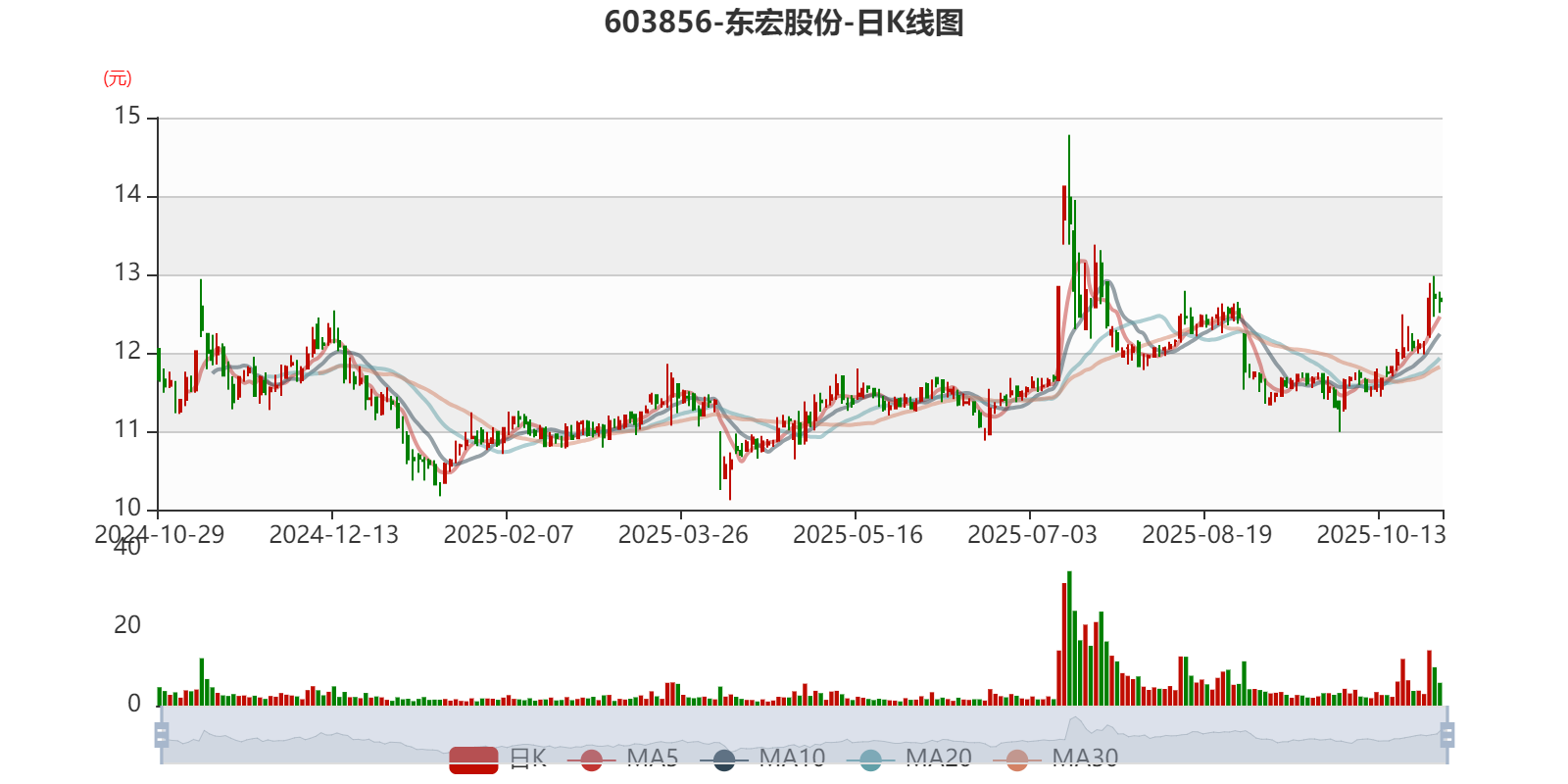 以10月28日收盘价计算,东宏股份目前市盈率(TTM)约为20.44倍,市净率(LF)约1.32倍,市销率(TTM)约1.77倍。