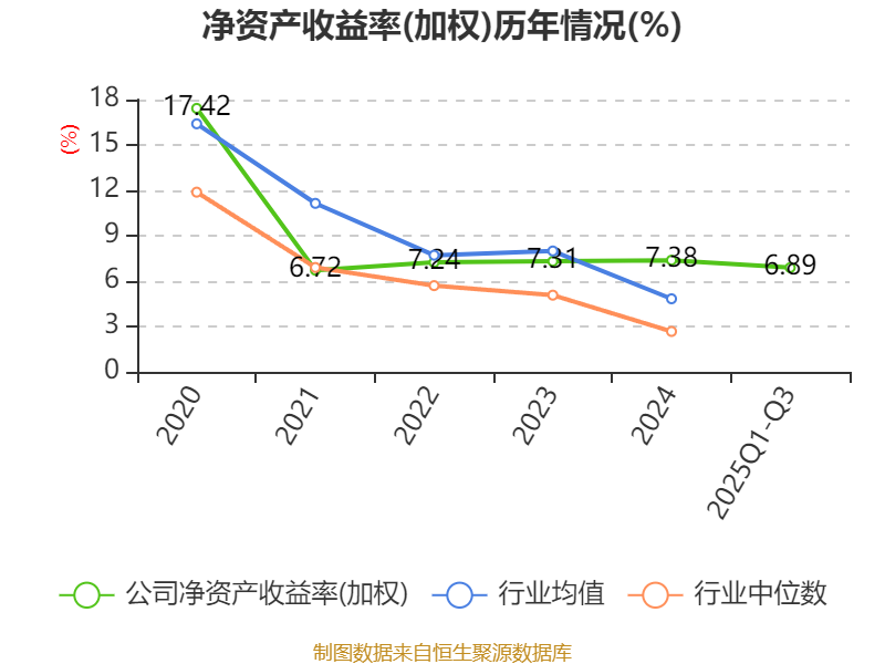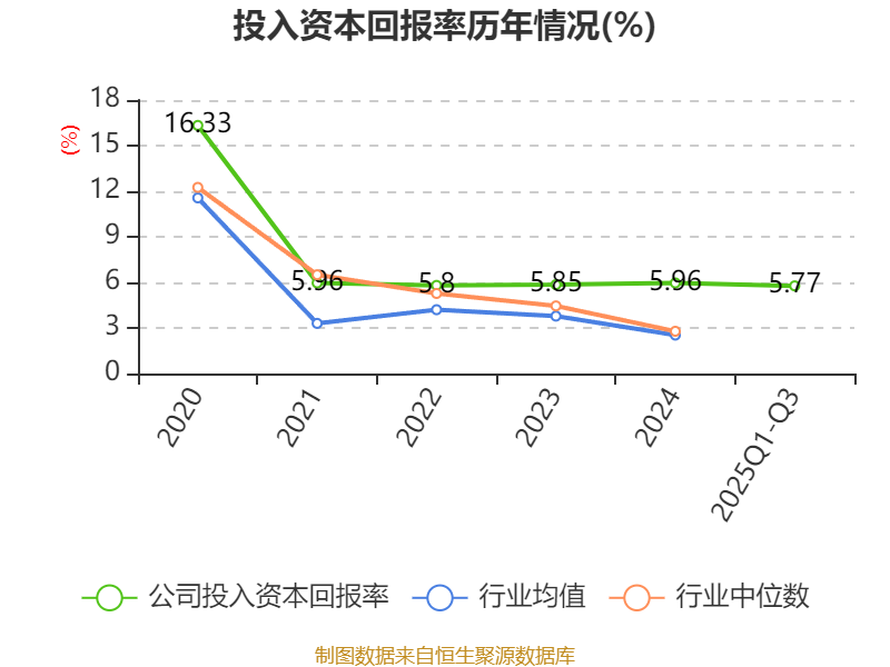 盈利能力方面, 2025年前三季度公司加权平均净资产收益率为6.89%,同比下降0.44个百分点。公司2025年前三季度投入资本回报率为5.77%,较上年同期上升0.05个百分点。
