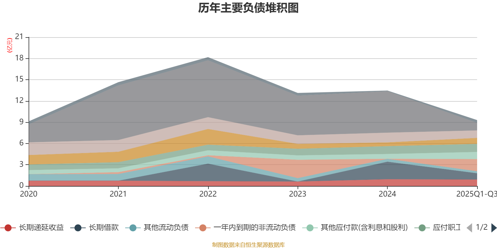 负债重大变化方面,截至2025年三季度末,公司短期借款较上年末减少81.79%,占公司总资产比重下降12.91个百分点;一年内到期的非流动负债较上年末增加28520.61%,占公司总资产比重上升4.68个百分点;长期借款较上年末减少64.17%,占公司总资产比重下降4.25个百分点;其他应付款(含利息和股利)较上年末增加49.73%,占公司总资产比重上升0.95个百分点。