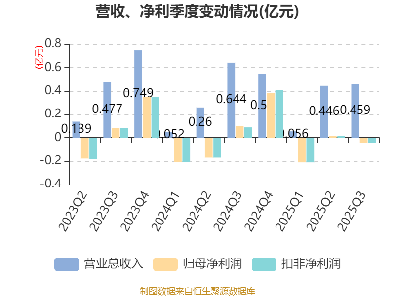 2025年前三季度,公司经营活动现金流净额为-4012.9万元,同比增加1119.12万元;筹资活动现金流净额-3522.55万元,同比增加6795.33万元;投资活动现金流净额-2011.95万元,上年同期为-116.68万元。