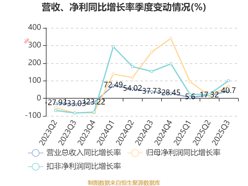 资产重大变化方面,截至2025年三季度末,公司货币资金较上年末增加105.55%,占公司总资产比重上升20.47个百分点;交易性金融资产合计较上年末减少42.1%,占公司总资产比重下降18.6个百分点;预付款项较上年末减少70.3%,占公司总资产比重下降1.84个百分点;应收票据及应收账款较上年末增加34.12%,占公司总资产比重上升1.13个百分点。