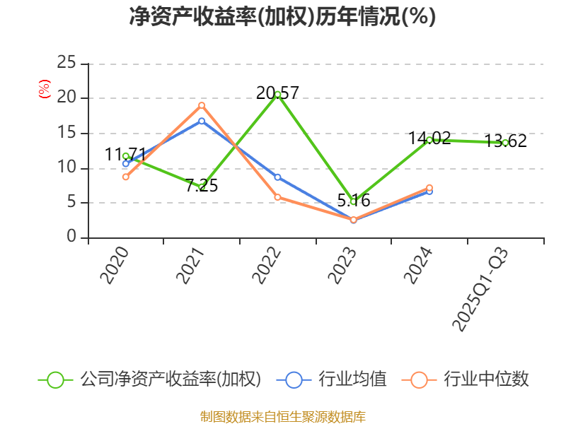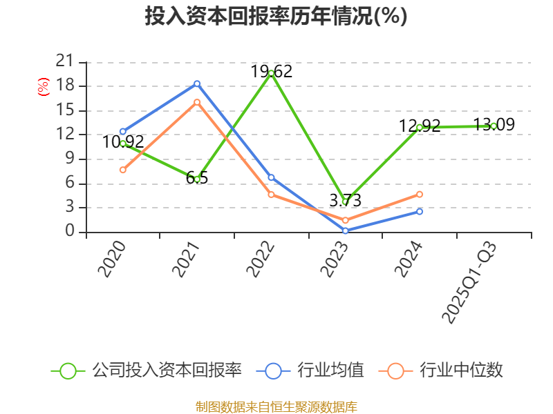 盈利能力方面, 2025年前三季度公司加权平均净资产收益率为13.62%,同比上升3.45个百分点。公司2025年前三季度投入资本回报率为13.09%,较上年同期上升3.27个百分点。