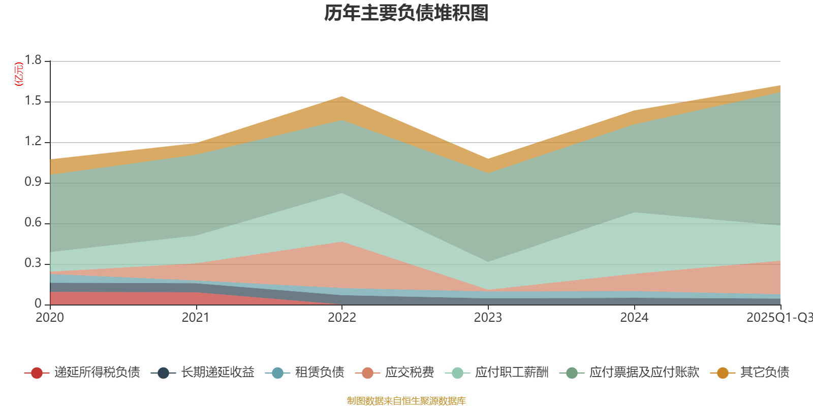负债重大变化方面,截至2025年三季度末,公司应付职工薪酬较上年末减少42.6%,占公司总资产比重下降0.97个百分点;应付票据及应付账款较上年末增加51.64%,占公司总资产比重上升0.96个百分点;应交税费较上年末增加92.03%,占公司总资产比重上升0.39个百分点;租赁负债较上年末减少34.24%,占公司总资产比重下降0.09个百分点。