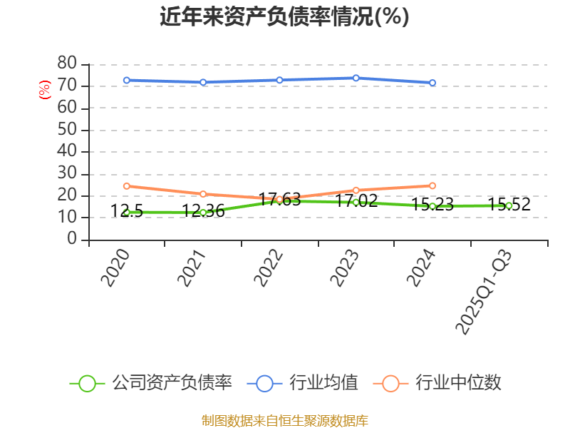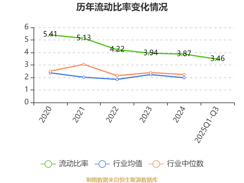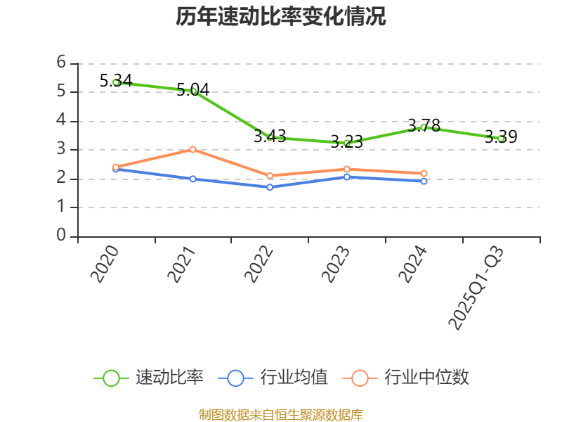 2025年前三季度,公司流动比率为3.46,速动比率为3.39。