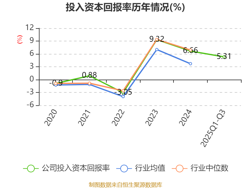盈利能力方面, 2025年前三季度公司加权平均净资产收益率为5.37%,同比下降0.88个百分点。公司2025年前三季度投入资本回报率为5.31%,较上年同期下降0.8个百分点。
