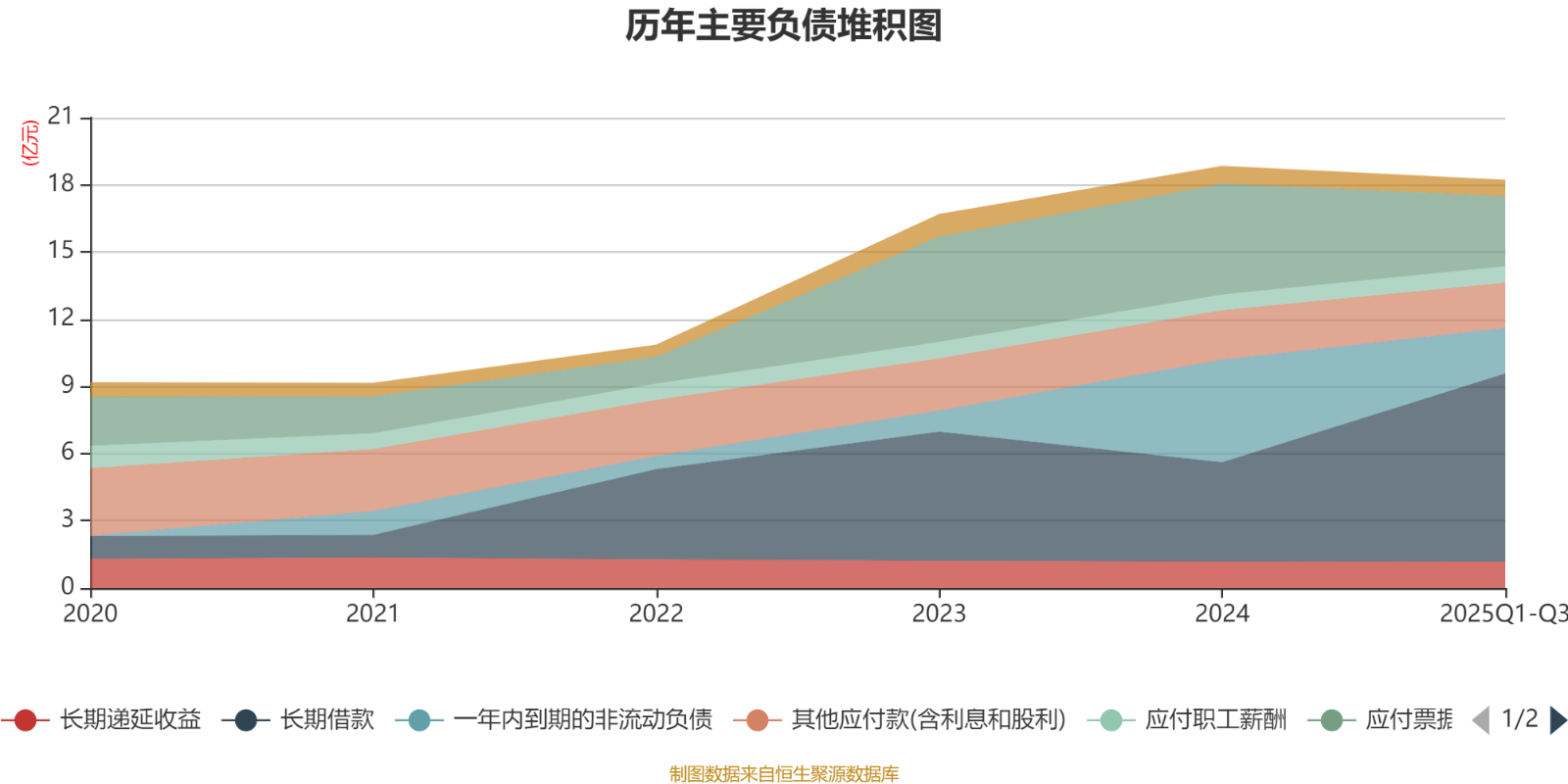 负债重大变化方面,截至2025年三季度末,公司长期借款较上年末增加89.6%,占公司总资产比重上升15.47个百分点;一年内到期的非流动负债较上年末减少55.63%,占公司总资产比重下降9.25个百分点;应付票据及应付账款较上年末减少36.69%,占公司总资产比重下降6.44个百分点;长期应付款合计较上年末增加133.35%,占公司总资产比重上升0.94个百分点。