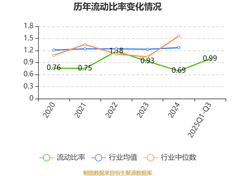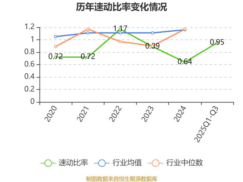 2025年前三季度,公司流动比率为0.99,速动比率为0.95。