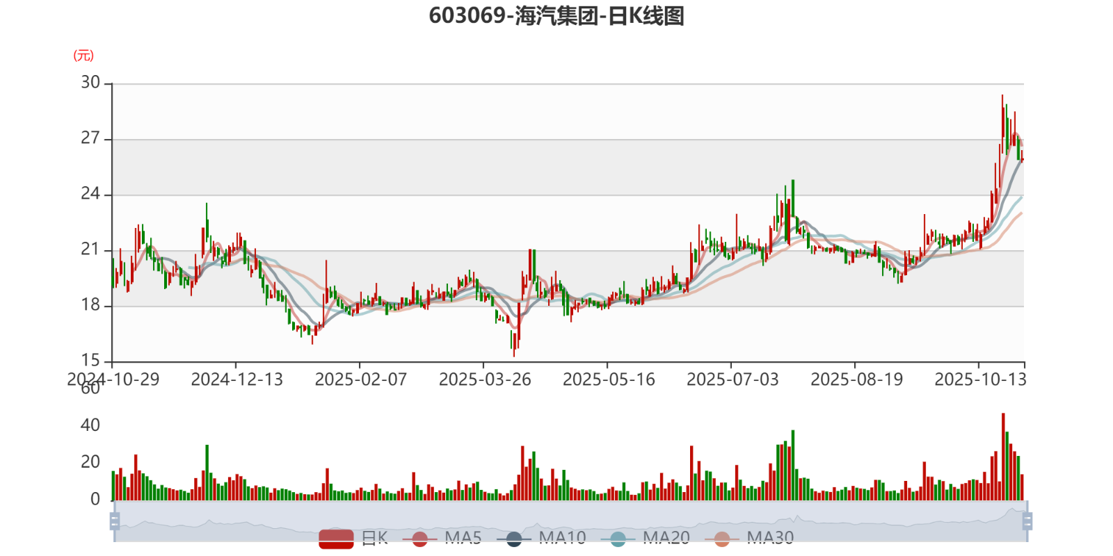 中证智能财讯海汽集团(603069)10月29日披露2025年第三季度报告。前三季度公司实现营业总收入4.89亿元,同比下降24.00%;归母净利润亏损4810.97万元,上年同期亏损598.68万元;扣非净利润亏损5661.54万元,上年同期亏损2231.42万元;经营活动产生的现金流量净额为9403.28万元,同比增长638.54%;报告期内,海汽集团基本每股收益为-0.15元,加权平均净资产收益率为-6.11%。