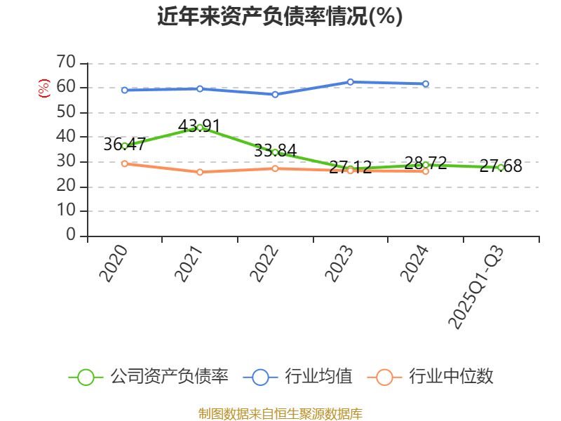 2025年前三季度,公司流动比率为1.93,速动比率为1.64。