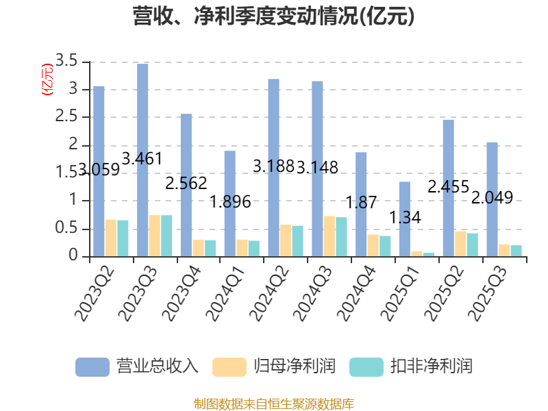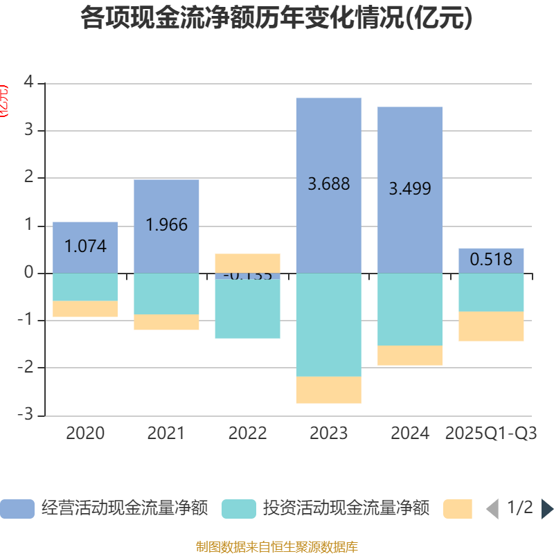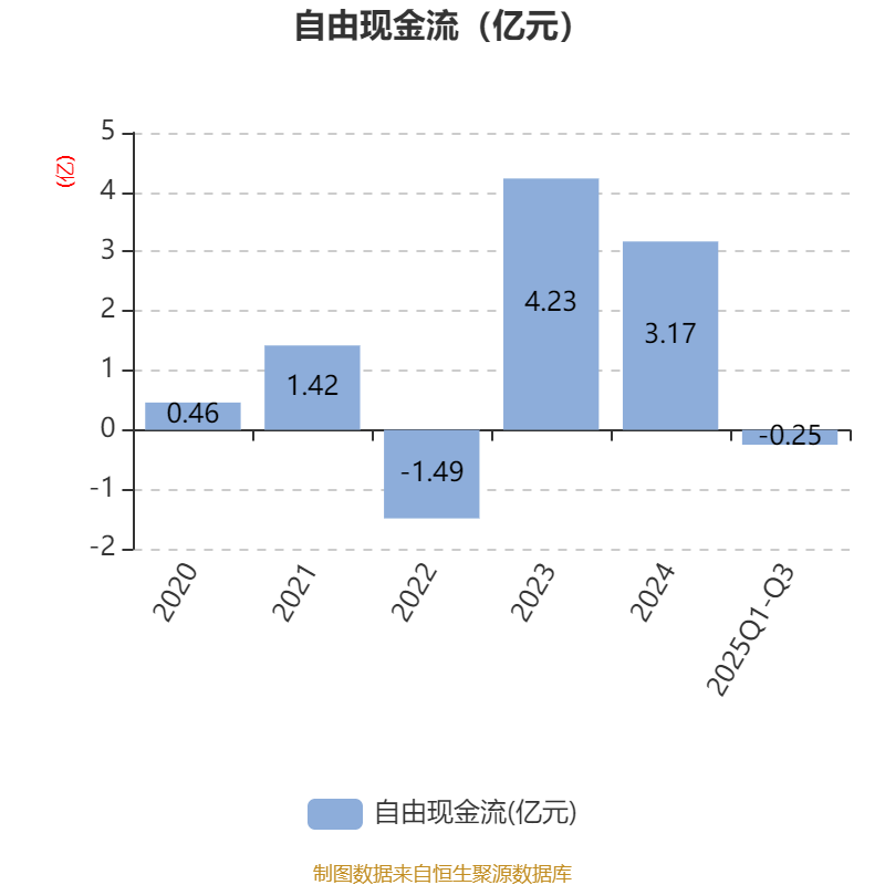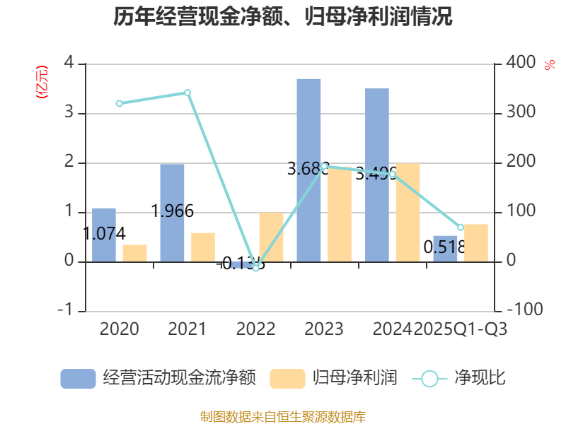 2025年前三季度,公司经营活动现金流净额为5177.81万元,同比下降66.98%;筹资活动现金流净额-6232.54万元,同比减少2300.51万元;投资活动现金流净额-8113.41万元,上年同期为-1890.88万元。