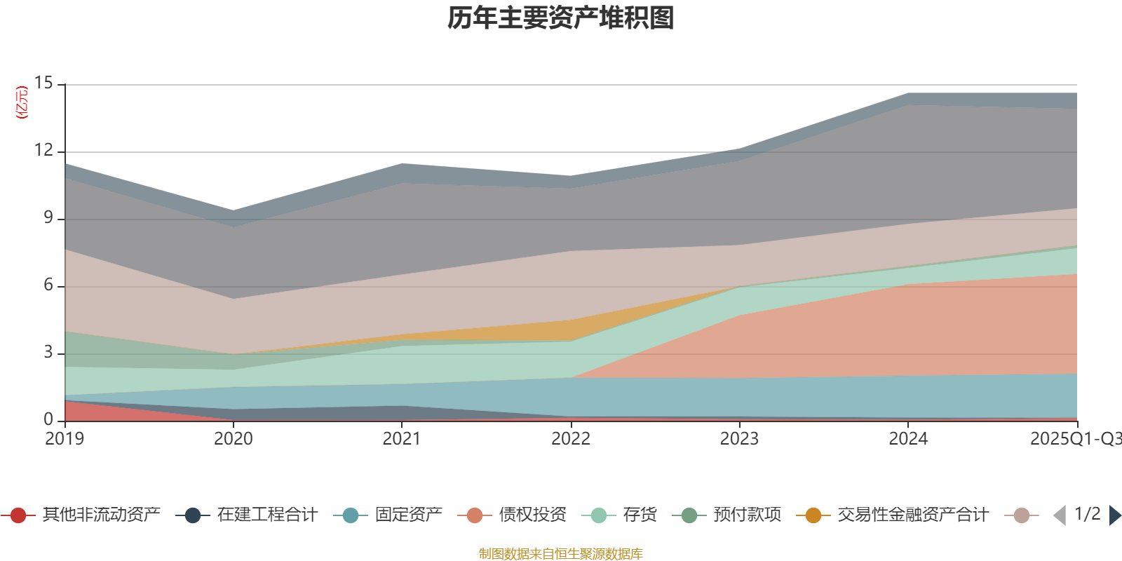 资产重大变化方面,截至2025年三季度末,公司货币资金较上年末减少16.48%,占公司总资产比重下降5.97个百分点;存货较上年末增加59.83%,占公司总资产比重上升2.95个百分点;债权投资较上年末增加9.04%,占公司总资产比重上升2.52个百分点;应收票据及应收账款较上年末减少11.82%,占公司总资产比重下降1.52个百分点。