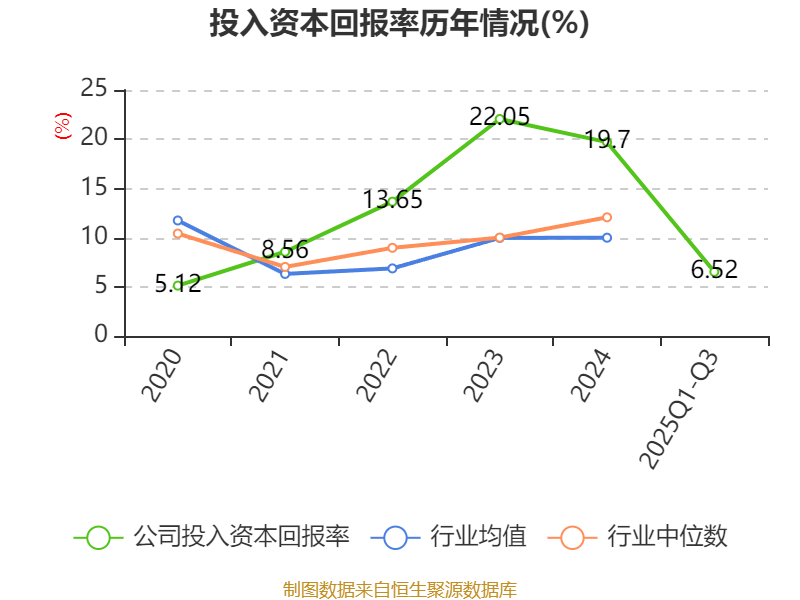 盈利能力方面, 2025年前三季度公司加权平均净资产收益率为6.96%,同比下降9.57个百分点。公司2025年前三季度投入资本回报率为6.52%,较上年同期下降9.78个百分点。