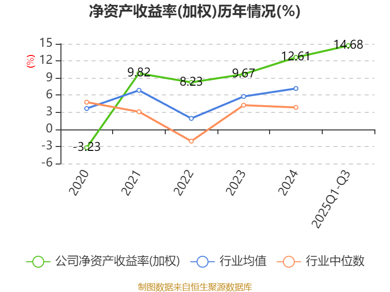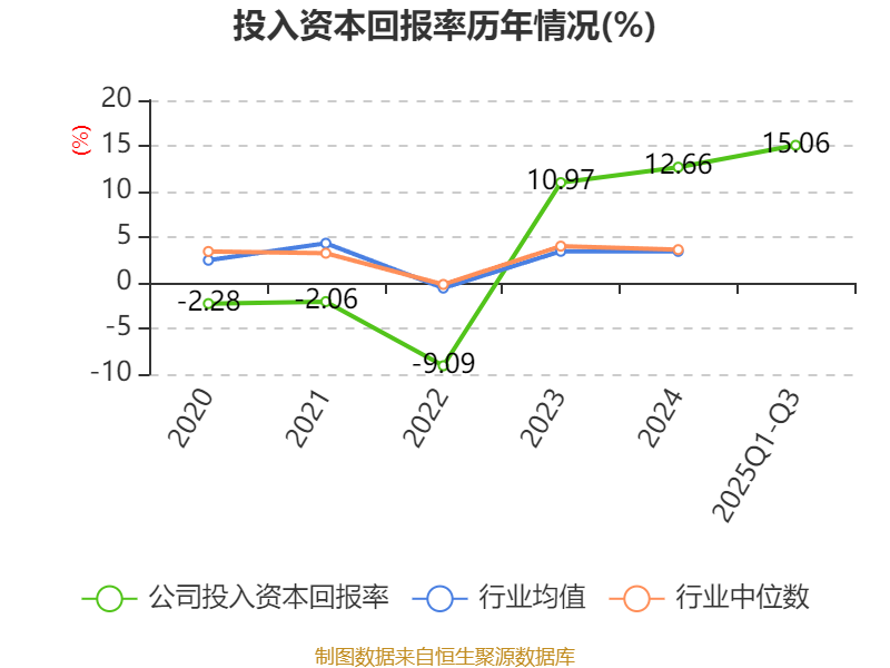 盈利能力方面, 2025年前三季度公司加权平均净资产收益率为14.68%,同比上升4.36个百分点。公司2025年前三季度投入资本回报率为15.06%,较上年同期上升4.56个百分点。