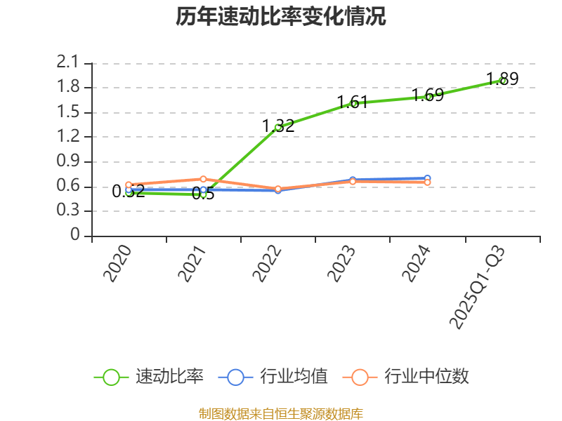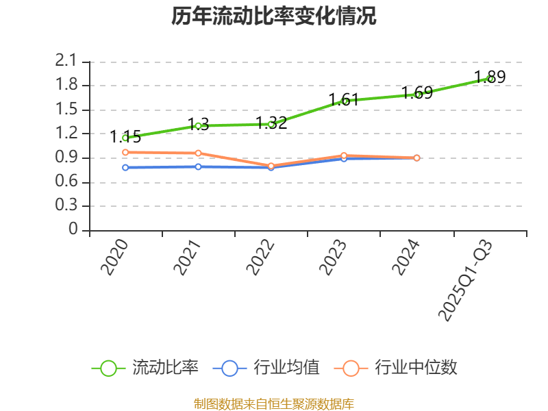 2025年前三季度,公司流动比率为1.89,速动比率为1.89。