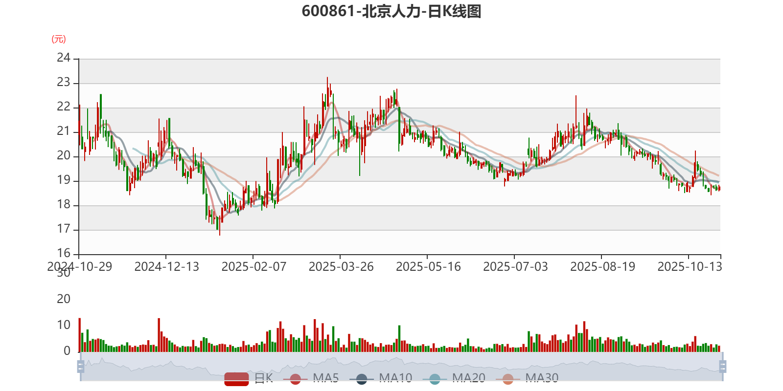 以10月28日收盘价计算,北京人力目前市盈率(TTM)约为9.17倍,市净率(LF)约1.49倍,市销率(TTM)约0.24倍。