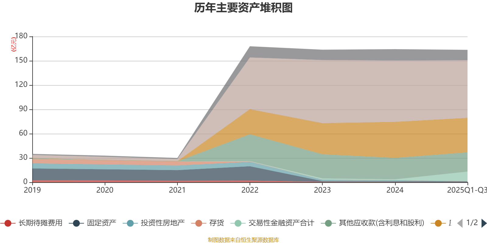 资产重大变化方面,截至2025年三季度末,公司交易性金融资产合计较上年末增加1028.34%,占公司总资产比重上升6.68个百分点;货币资金较上年末减少6.32%,占公司总资产比重下降2.71个百分点;其他应收款(含利息和股利)较上年末减少10.28%,占公司总资产比重下降1.59个百分点;应收票据及应收账款较上年末减少3.99%,占公司总资产比重下降0.95个百分点。