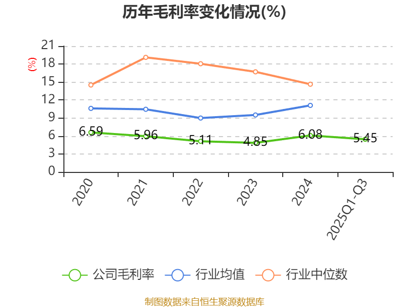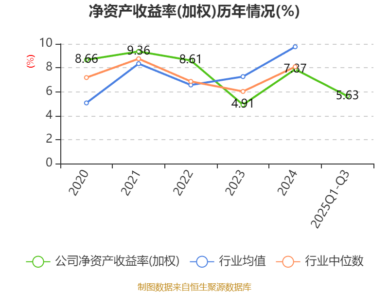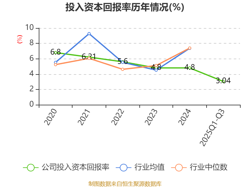 盈利能力方面, 2025年前三季度公司加权平均净资产收益率为5.63%,同比下降0.24个百分点。公司2025年前三季度投入资本回报率为3.04%,较上年同期下降0.61个百分点。