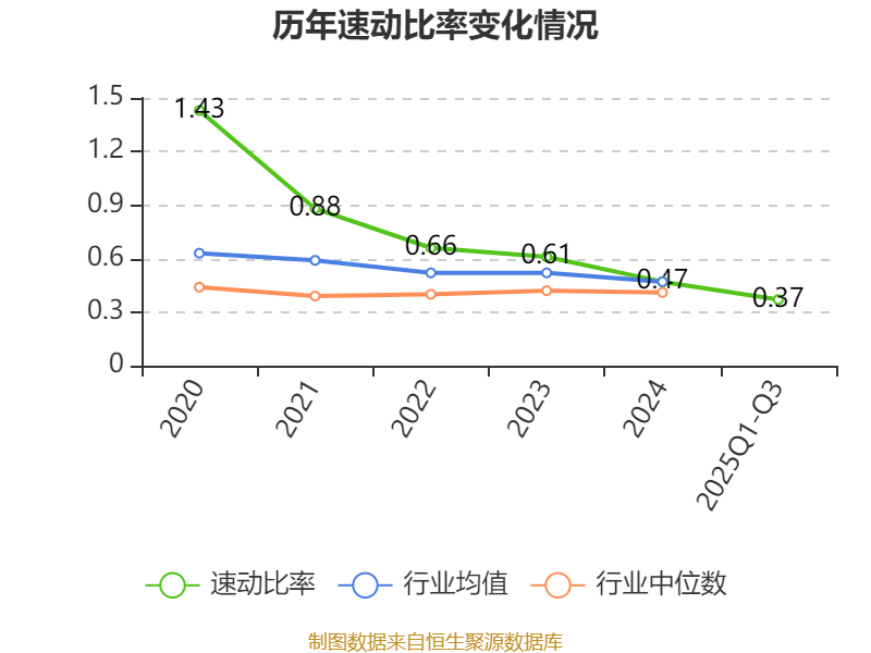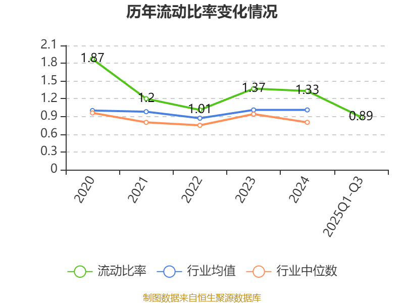 2025年前三季度,公司流动比率为0.89,速动比率为0.37。