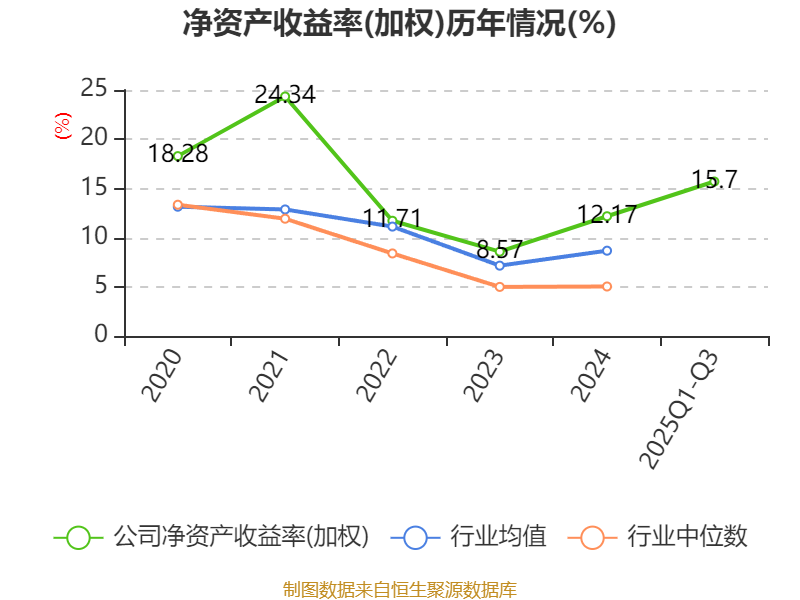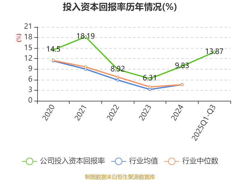 盈利能力方面, 2025年前三季度公司加权平均净资产收益率为15.7%,同比上升6.06个百分点。公司2025年前三季度投入资本回报率为13.87%,较上年同期上升6.08个百分点。