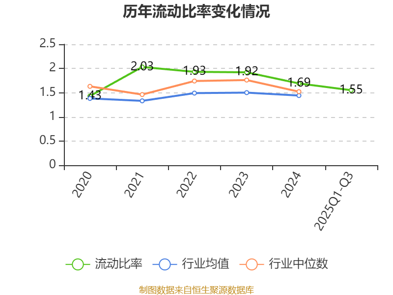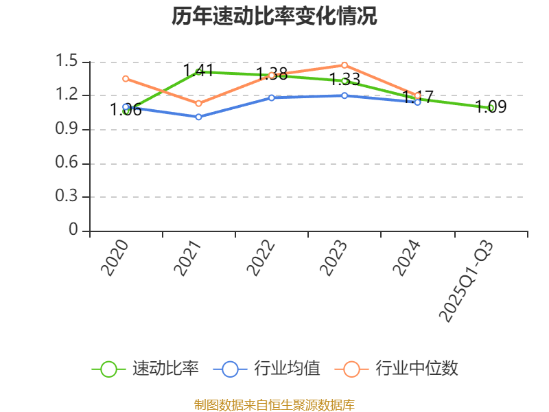 2025年前三季度,公司流动比率为1.55,速动比率为1.09。