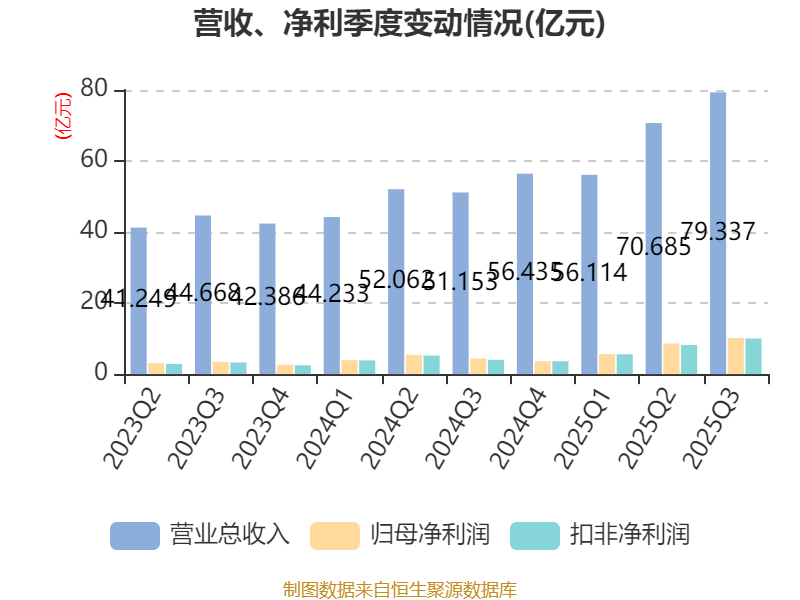 三季报显示,2025年三季度末的公司十大流通股东中,新进股东为永赢科技智选混合型发起式证券投资基金、全国社保基金五零二组合,取代了二季度末的阿布达比投资局、华润信托·淡水泉平衡5期集合资金信托计划。在具体持股比例上,香港中央结算有限公司、华泰柏瑞沪深300交易型开放式指数证券投资基金、易方达沪深300交易型开放式指数发起式证券投资基金、华夏沪深300交易型开放式指数证券投资基金、嘉实沪深300交易型开放式指数证券投资基金持股有所下降。