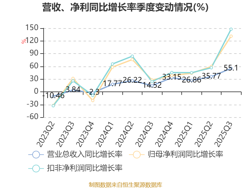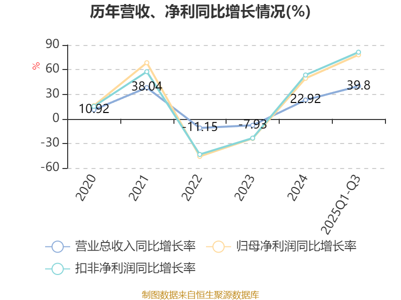 负债重大变化方面,截至2025年三季度末,公司应付票据及应付账款较上年末增加41.2%,占公司总资产比重上升3.96个百分点;短期借款较上年末增加76.59%,占公司总资产比重上升3.48个百分点;一年内到期的非流动负债较上年末减少80.12%,占公司总资产比重下降3.47个百分点;长期借款较上年末增加99.36%,占公司总资产比重上升1.45个百分点。