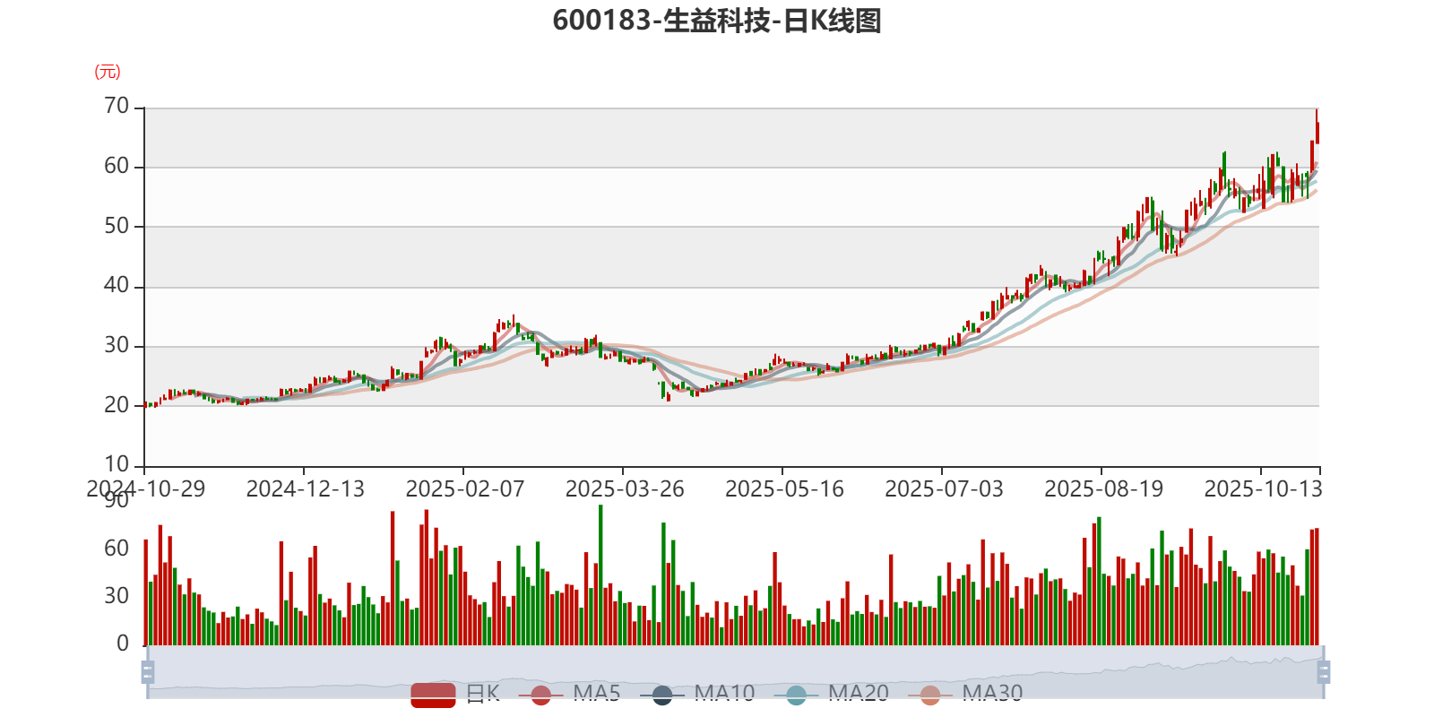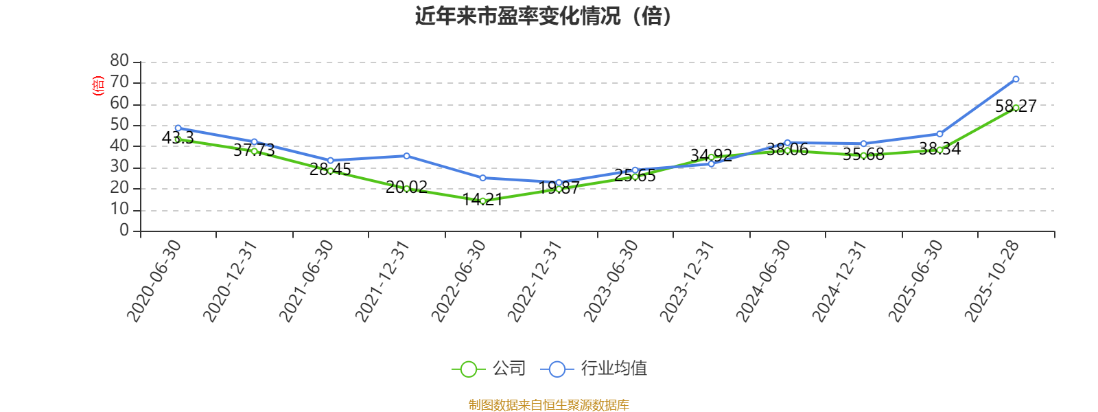 以10月28日收盘价计算,生益科技目前市盈率(TTM)约为58.27倍,市净率(LF)约10.54倍,市销率(TTM)约6.23倍。