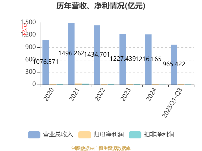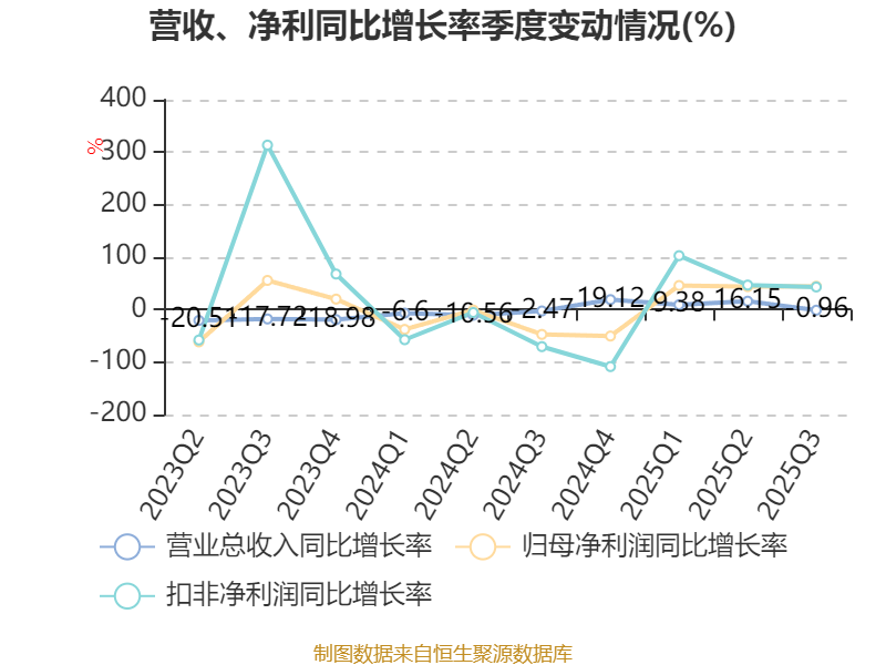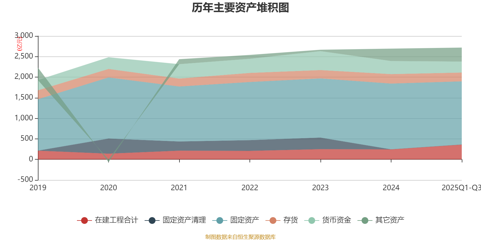 资产重大变化方面,截至2025年三季度末,公司在建工程合计较上年末增加47.9%,占公司总资产比重上升4.2个百分点;固定资产较上年末减少3.95%,占公司总资产比重下降2.9个百分点;货币资金较上年末减少16.28%,占公司总资产比重下降2.02个百分点;应收票据及应收账款较上年末增加213.63%,占公司总资产比重上升1.15个百分点。