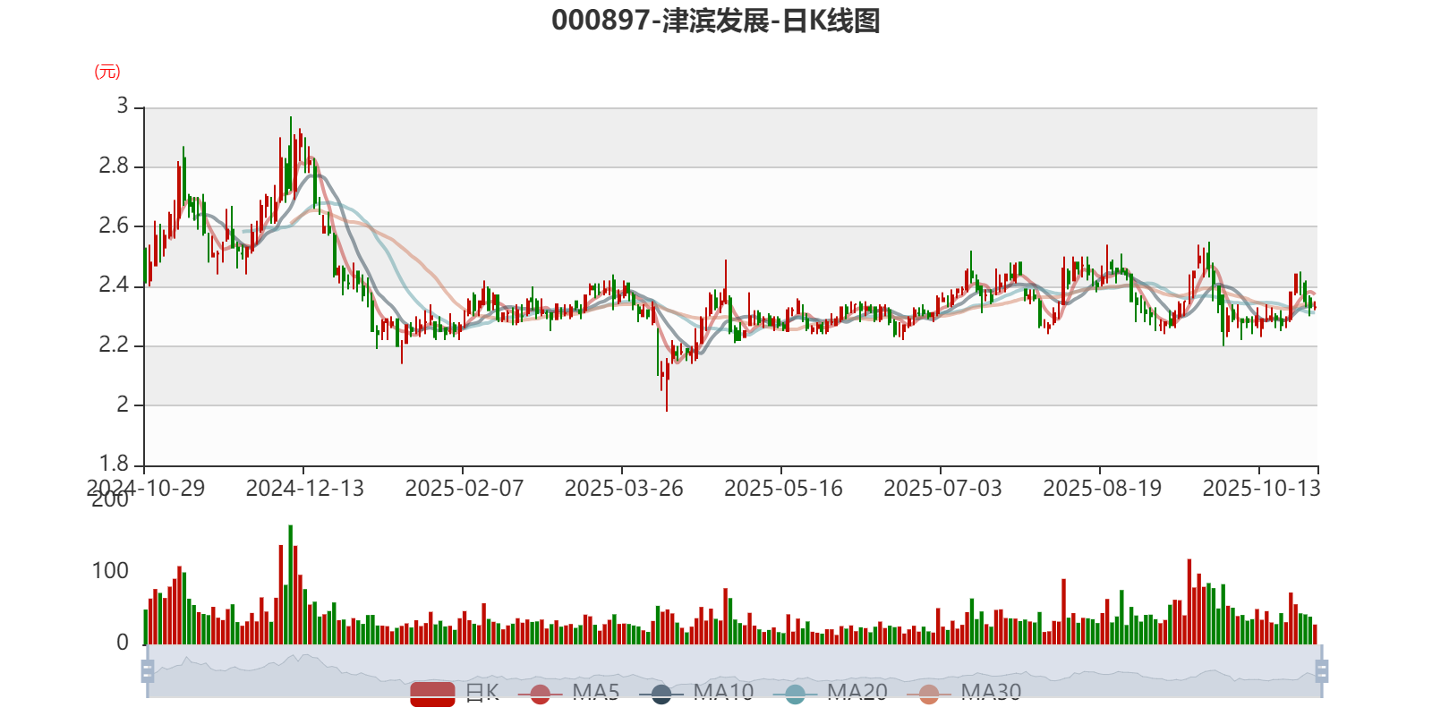 以10月28日收盘价计算,津滨发展目前市盈率(TTM)约为24.26倍,市净率(LF)约1.23倍,市销率(TTM)约2.54倍。