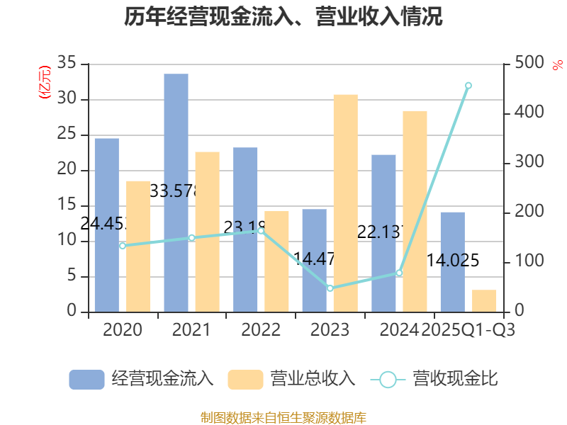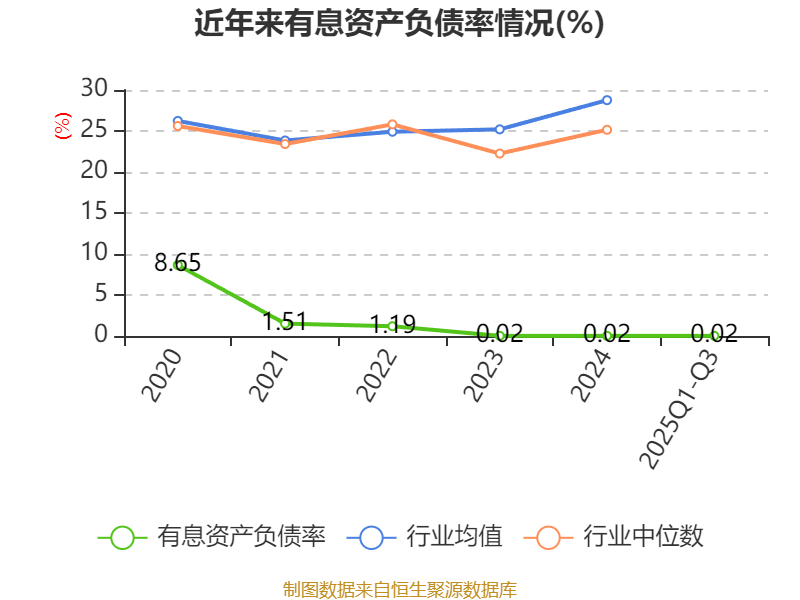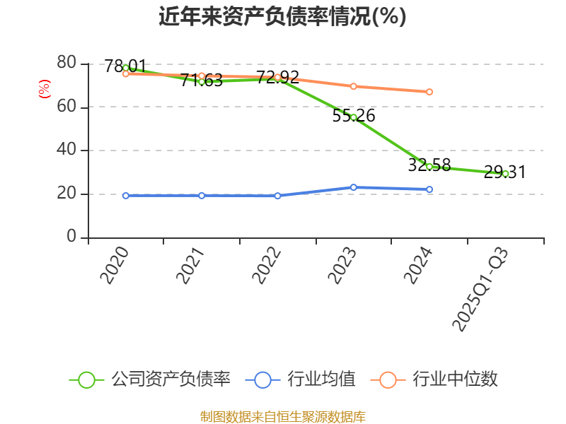 2025年前三季度,公司流动比率为3.22,速动比率为0.64。