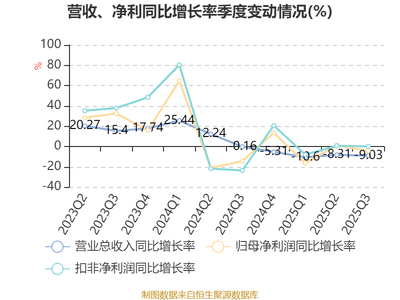 负债重大变化方面,截至2025年三季度末,公司应付票据及应付账款较上年末减少7.65%,占公司总资产比重下降1.56个百分点;长期递延收益较上年末增加57.49%,占公司总资产比重上升0.87个百分点;短期借款较上年末减少1.89%,占公司总资产比重下降0.28个百分点;应付职工薪酬较上年末减少40.55%,占公司总资产比重下降0.26个百分点。