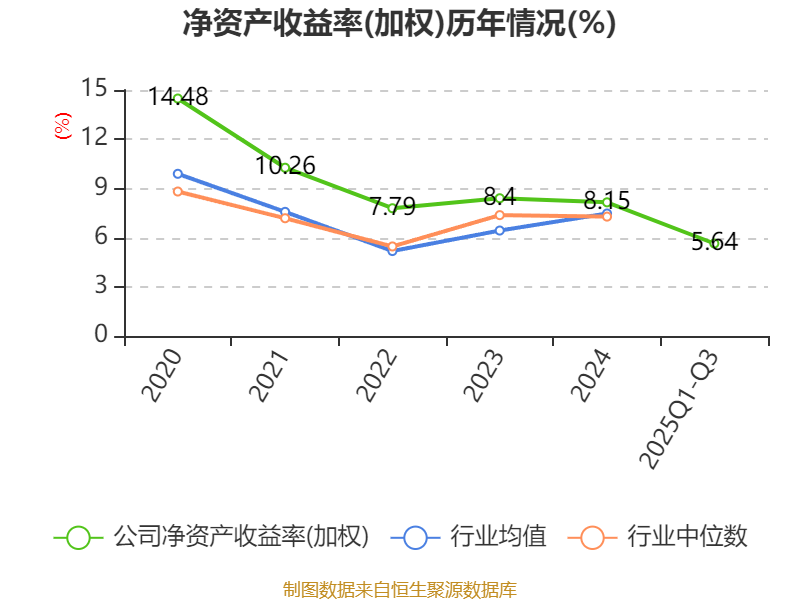 盈利能力方面, 2025年前三季度公司加权平均净资产收益率为5.64%,同比下降0.54个百分点。公司2025年前三季度投入资本回报率为4.83%,较上年同期下降0.7个百分点。