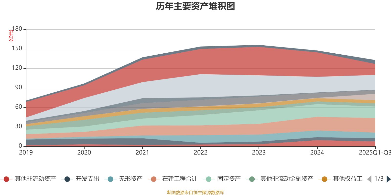 资产重大变化方面,截至2025年三季度末,公司货币资金较上年末减少55.32%,占公司总资产比重下降12.87个百分点;其他流动资产较上年末增加1859.09%,占公司总资产比重上升7.05个百分点;在建工程合计较上年末增加5.77%,占公司总资产比重上升2.52个百分点;一年内到期的非流动资产较上年末增加11954.92%,占公司总资产比重上升2.35个百分点。