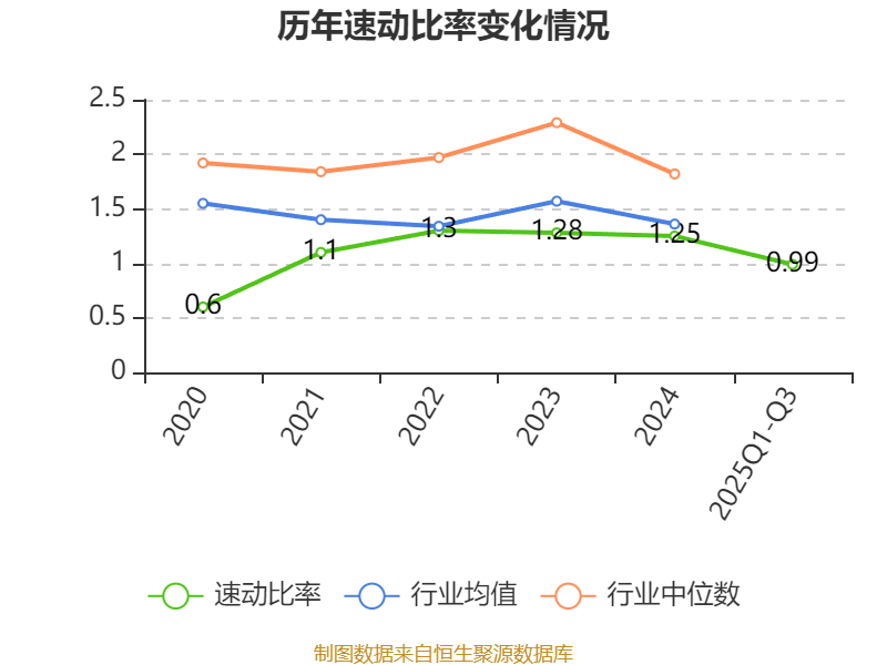 2025年前三季度,公司流动比率为1.5,速动比率为0.99。