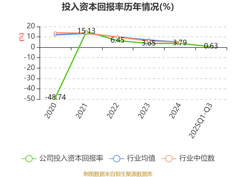 盈利能力方面, 2025年前三季度公司加权平均净资产收益率为0.65%,同比下降3.77个百分点。公司2025年前三季度投入资本回报率为0.63%,较上年同期下降3.28个百分点。