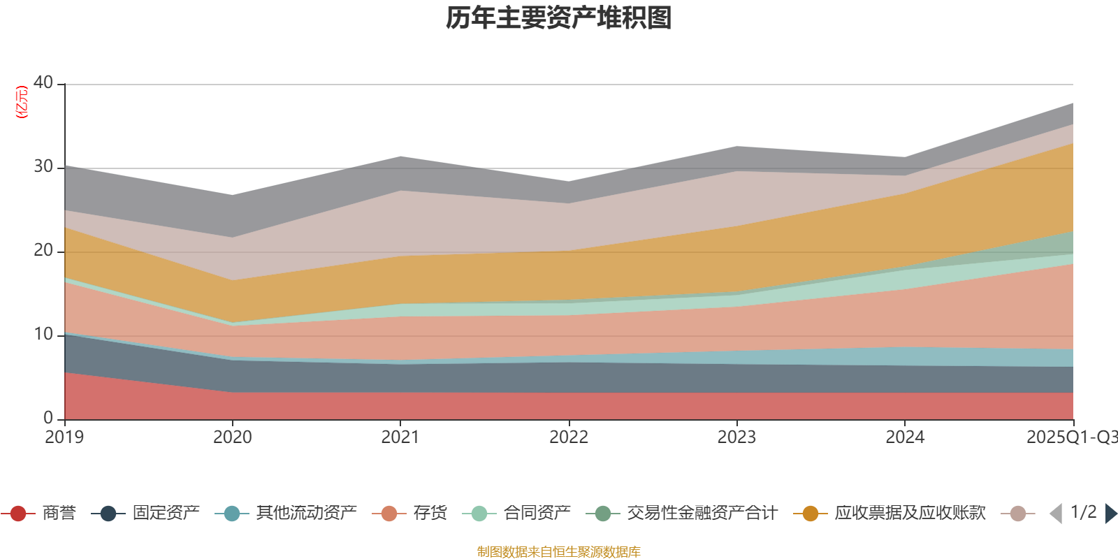 负债重大变化方面,截至2025年三季度末,公司合同负债较上年末增加67.3%,占公司总资产比重上升7.22个百分点;应付票据及应付账款较上年末增加43.22%,占公司总资产比重上升2.82个百分点;短期借款较上年末增加75.91%,占公司总资产比重上升1.07个百分点;应交税费较上年末减少46.57%,占公司总资产比重下降0.71个百分点。