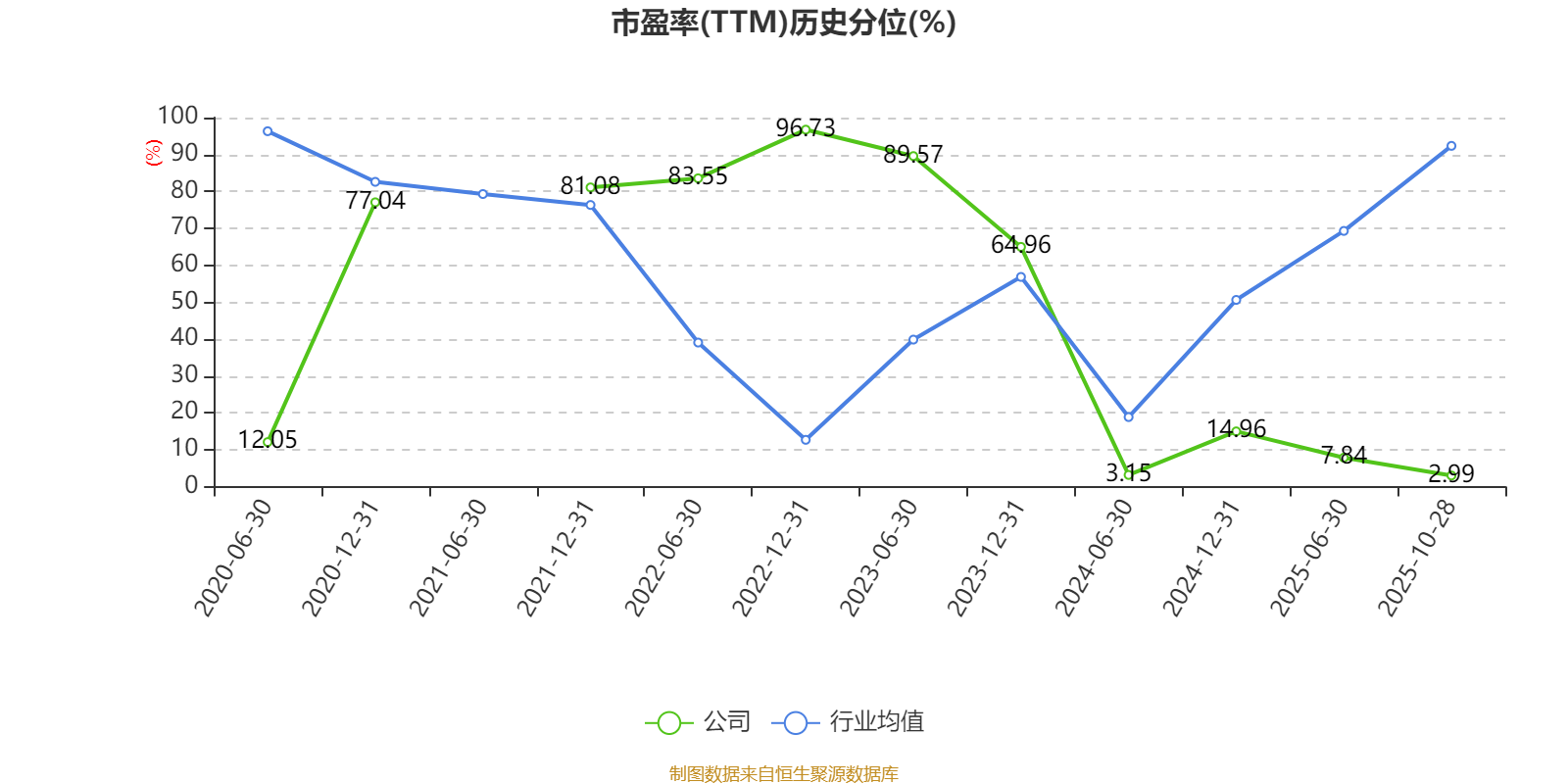 市盈率、市净率为负时,不显示当期分位数,会导致折线图中断。
