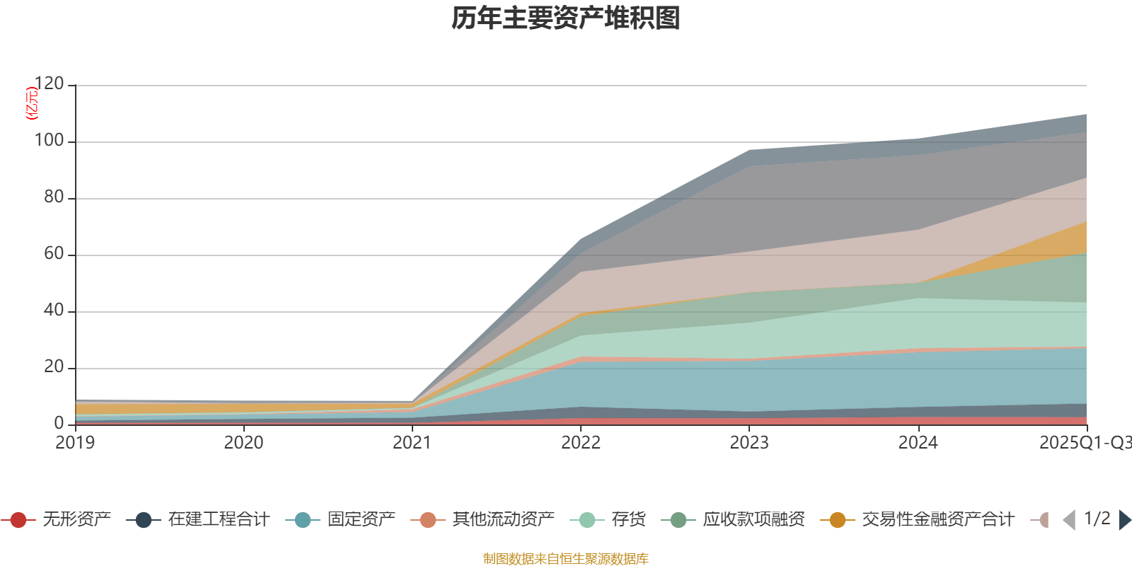 资产重大变化方面,截至2025年三季度末,公司货币资金较上年末减少38.81%,占公司总资产比重下降11.4个百分点;应收款项融资较上年末增加226.28%,占公司总资产比重上升10.75个百分点;交易性金融资产合计占公司总资产的10.07%,上年末为0;应收票据及应收账款较上年末减少17.91%,占公司总资产比重下降4.53个百分点。