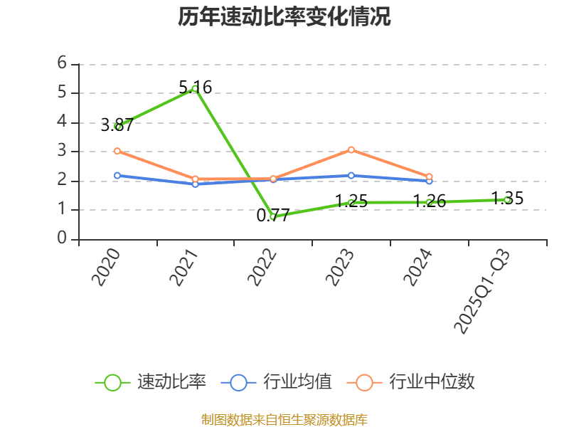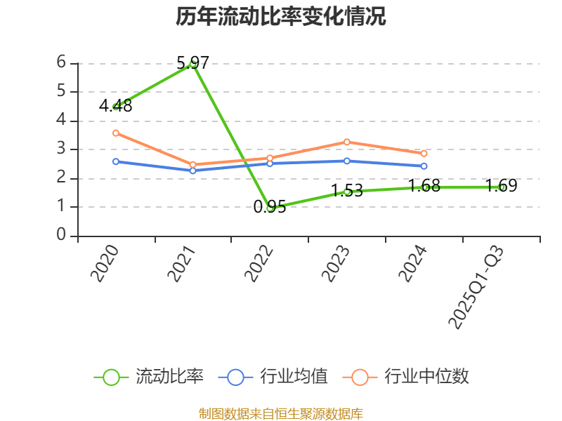 2025年前三季度,公司流动比率为1.69,速动比率为1.35。