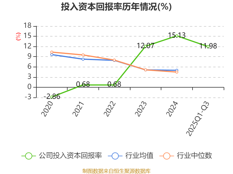 盈利能力方面, 2025年前三季度公司加权平均净资产收益率为11.68%,同比上升0.46个百分点。公司2025年前三季度投入资本回报率为11.98%,较上年同期上升1.4个百分点。