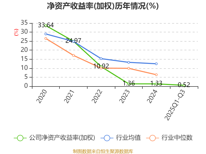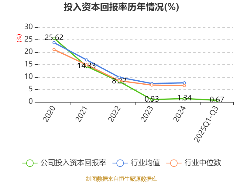 盈利能力方面, 2025年前三季度公司加权平均净资产收益率为0.52%,同比下降2.94个百分点。公司2025年前三季度投入资本回报率为0.67%,较上年同期下降2.28个百分点。