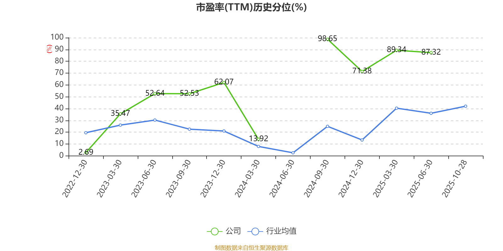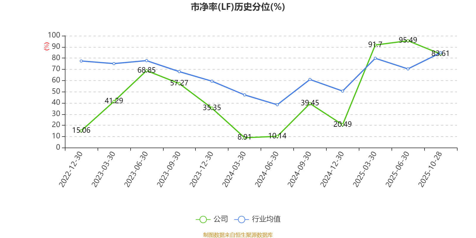 市盈率、市净率为负时,不显示当期分位数,会导致折线图中断。