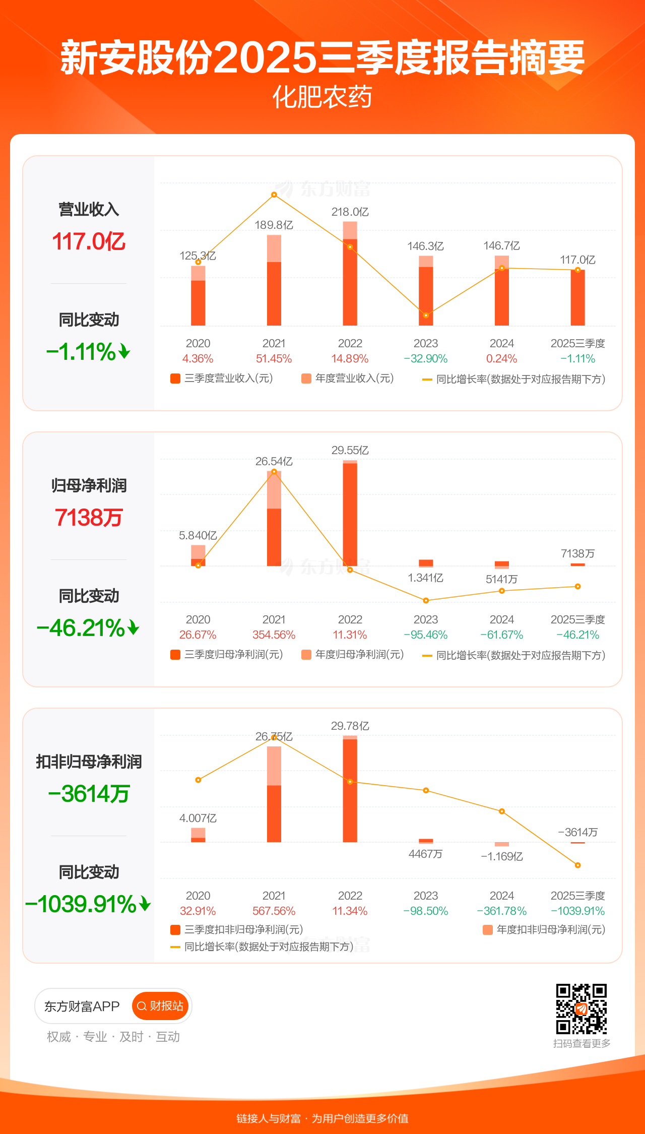 新安股份10月29日发布2025年三季报显示,公司前三季实现营业收入116.99亿元,同比下滑1.11%;归母净利润7137.61万元,同比下滑46.21%;扣非归母净利润-3613.55万元。