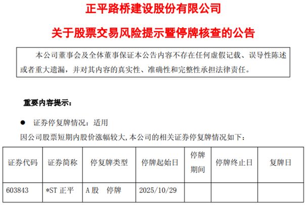 《每日经济新闻》记者(以下简称每经记者)注意到,这并不是*ST正平近期首次停牌核查,公司10月9日起便停牌了5个交易日,且公司已对前期股票交易异常波动情况进行了停牌核查,于2025年10月16日披露了核查结果并复牌。